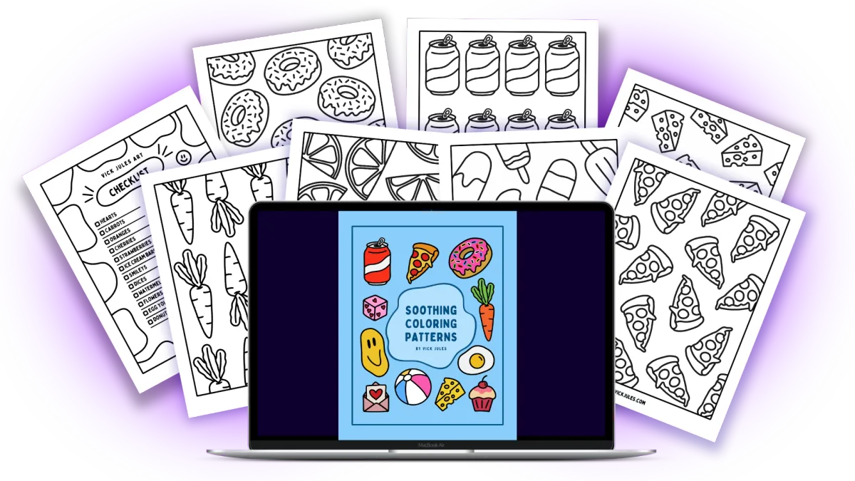 The coloring book is created by me, Vick Jules, a female artist in my mid-20s based in Virginia and I love creating art that inspires fun, relaxation and joy. I hope my designs can bring peace, happiness, and creativity into your life. Thank you for letting my art be part of your journey!